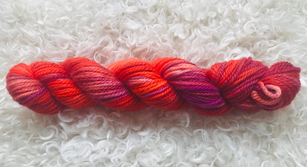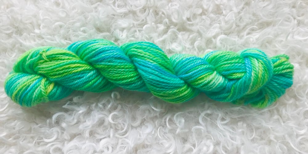Hand Dyed 8 ply Double Knit Yarn from New Zealand. Each skein is 50 grams and 101 metres long.